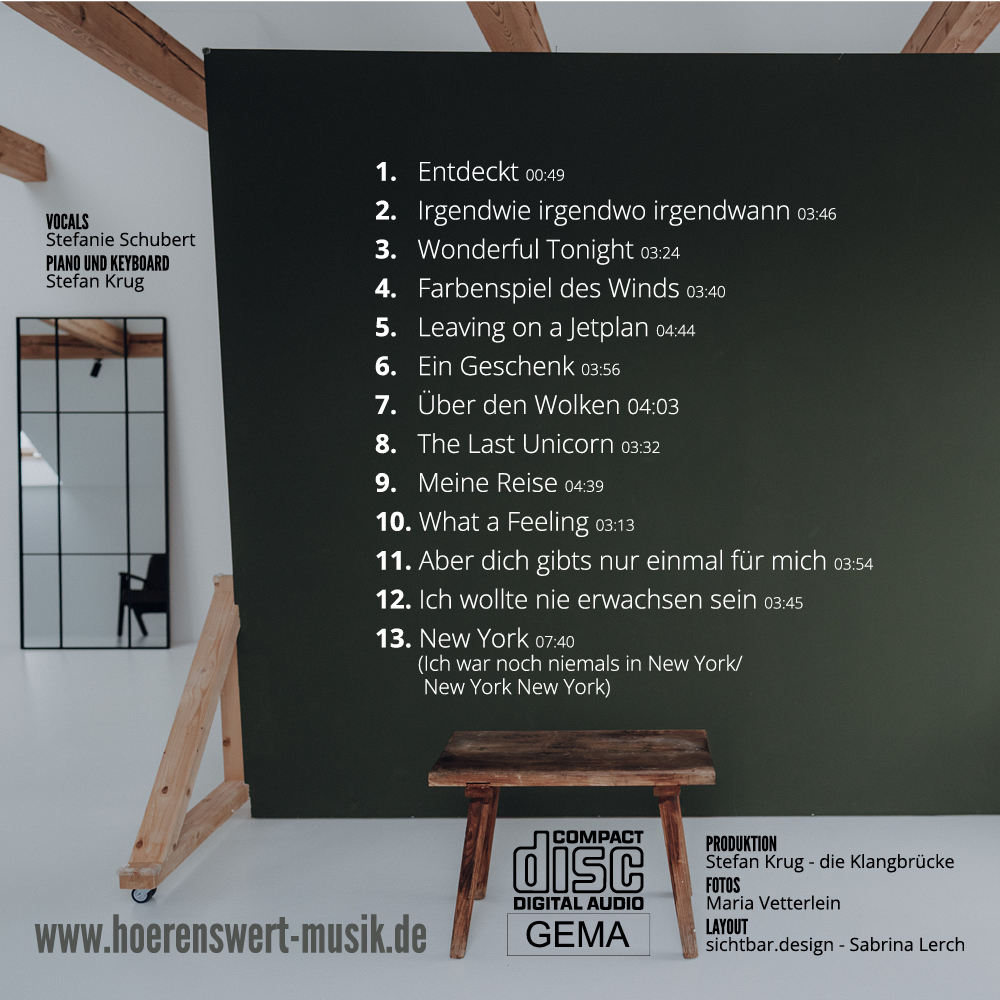 Hey, wir sind Stefanie und Stefan. Und zusammen sind wir HÖRENSWERT. Seit vielen Jahren verbindet uns die Leidenschaft zur Musik und wir lieben es Songs auf unsere Art zu interpretieren. Unsere gemeinsame Reise begann im Studio während der Produktion des Albums echt?! von Stefanie Schubert mit 12 MUTivierenden Songs.